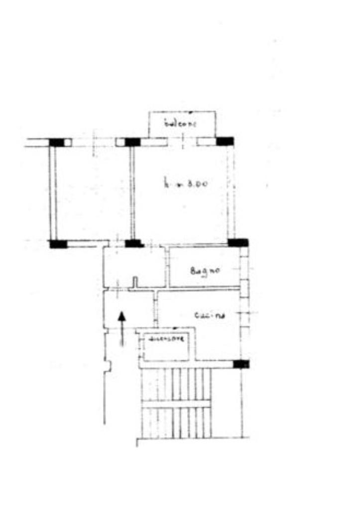 L' immobile è suddiviso in: ingresso, corridoio, cucina, soggiorno, una camera da letto, un bagno con vasca ed un balcone.