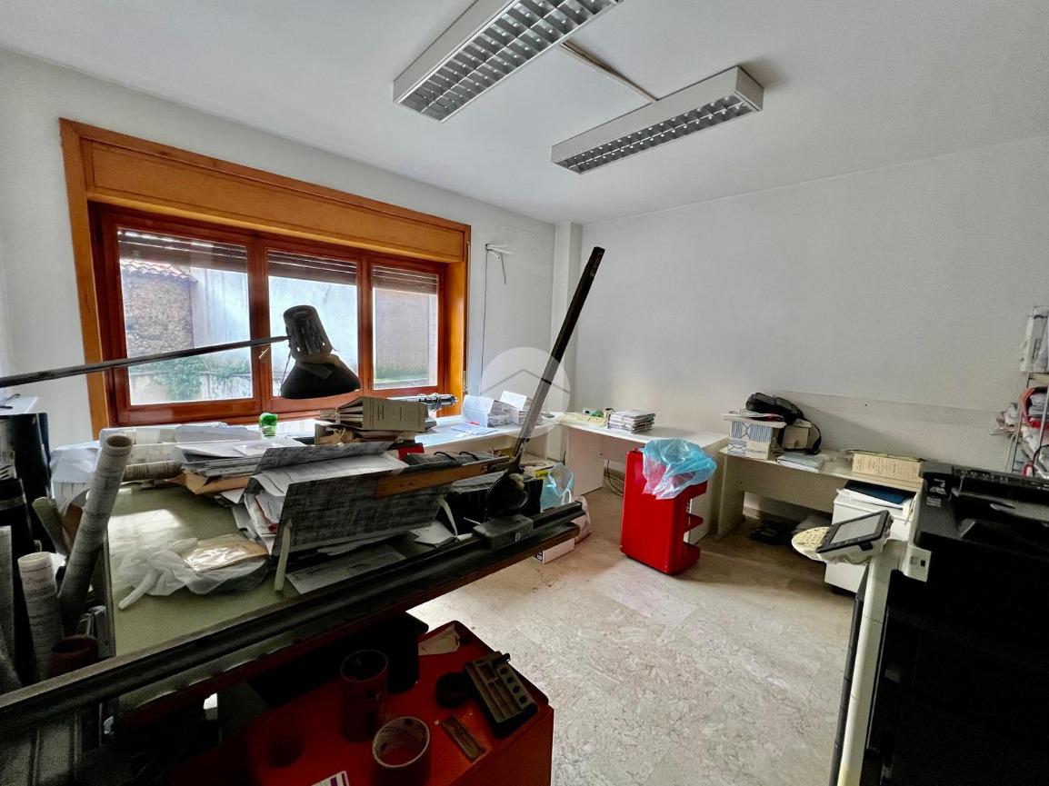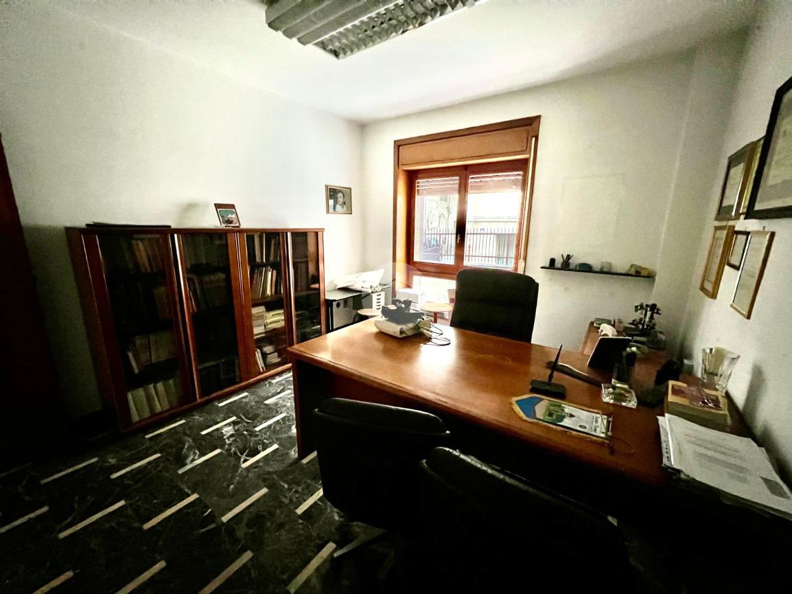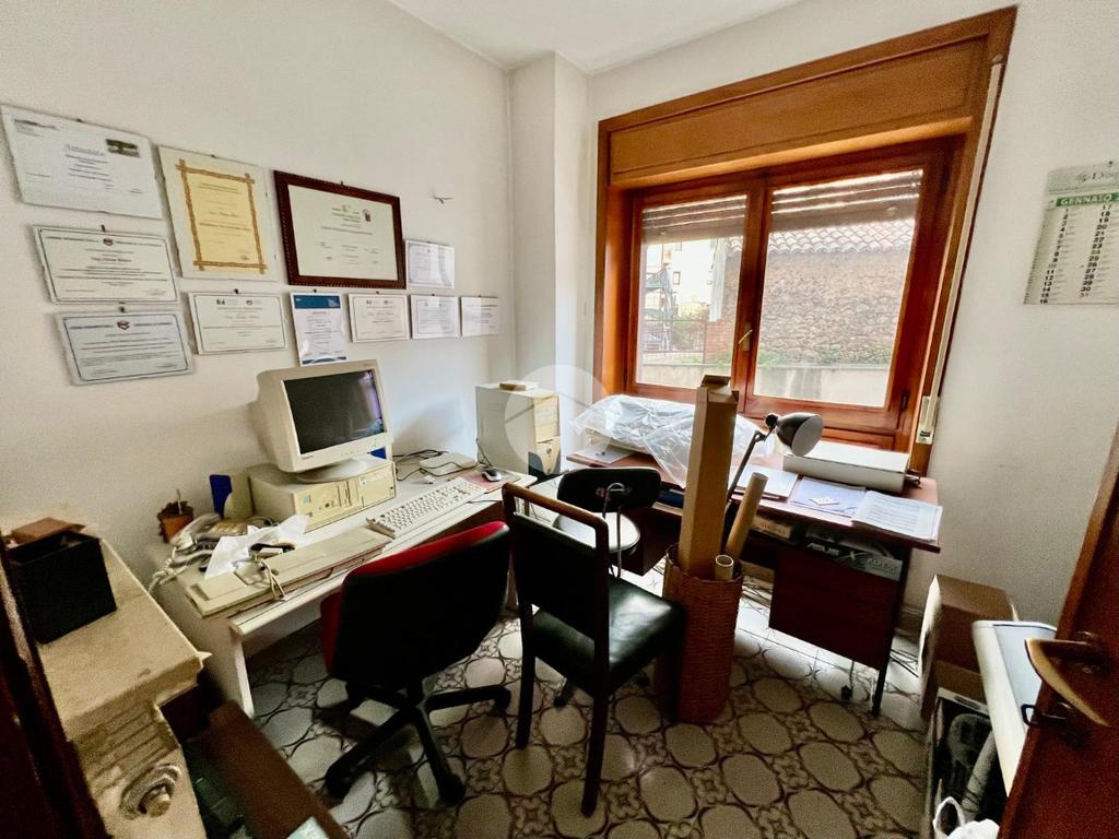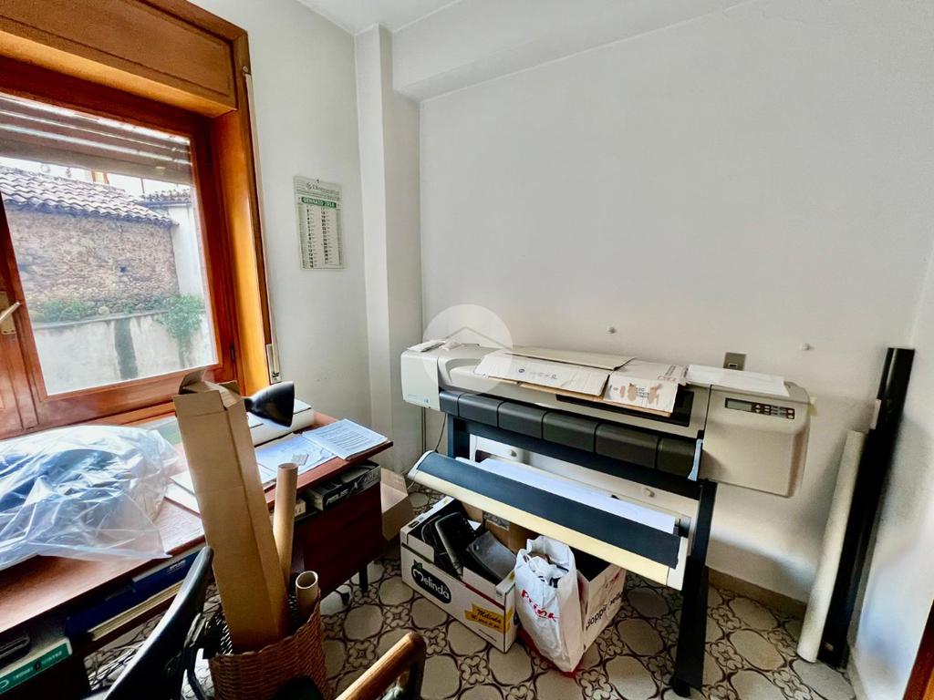 L' appartamento al momento, adibito ad uso ufficio, è suddiviso in: ingresso, corridoio, tre stanze, bagno e ripostiglio.