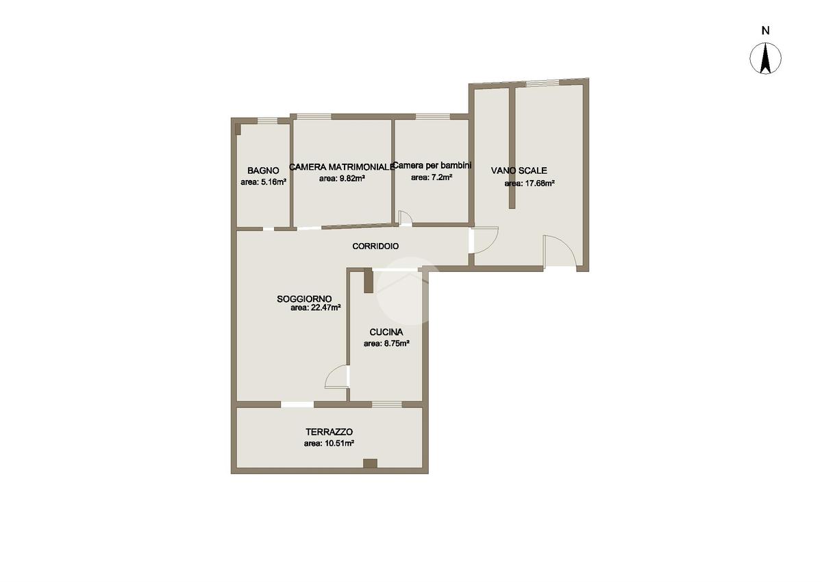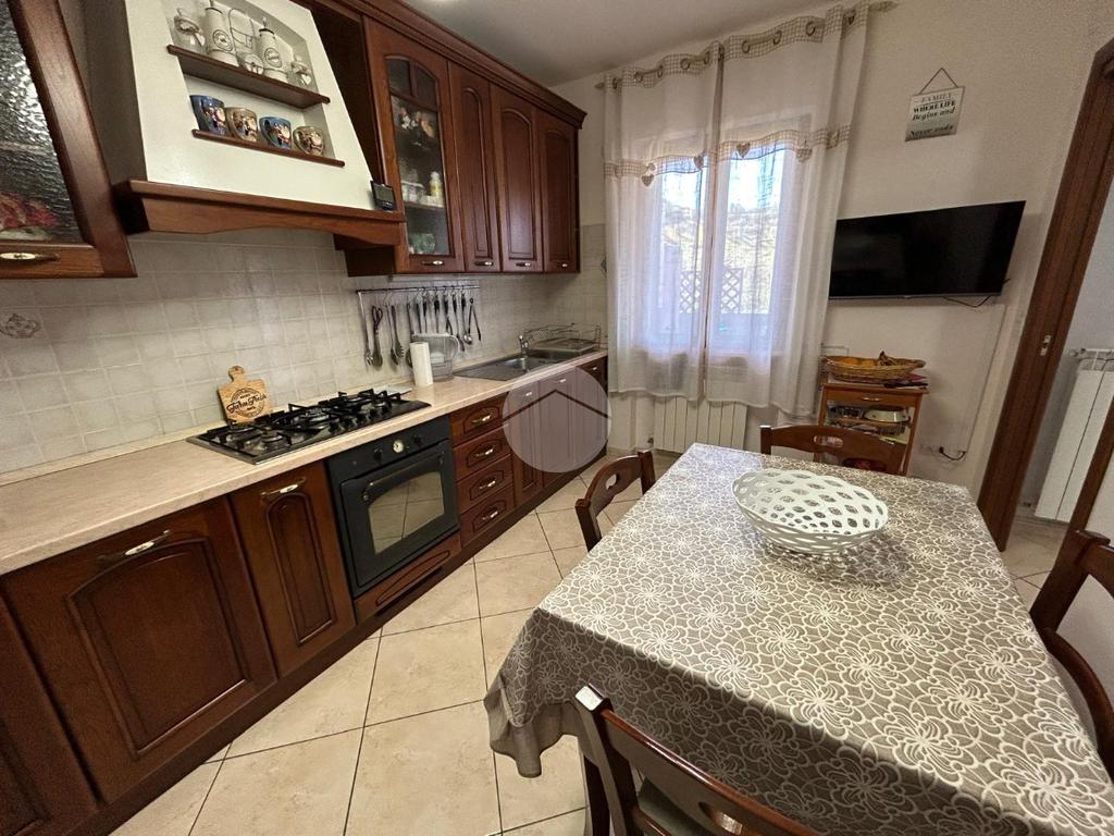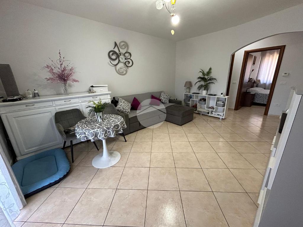 L' immobile è suddiviso in: ingresso, corridoio, comodo soggiorno con uscita sul terrazzo di MQ 15, cucina abitabile, due camere da letto ed un bagno finestrato con vasca.